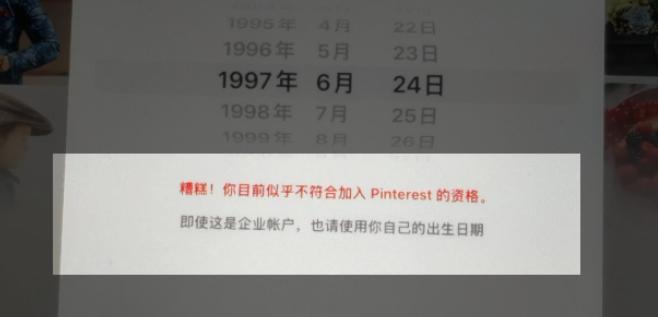 明明年龄符合Pinterest平台要求,但却跳出了“你似乎不符合加入Pinterest的资格”