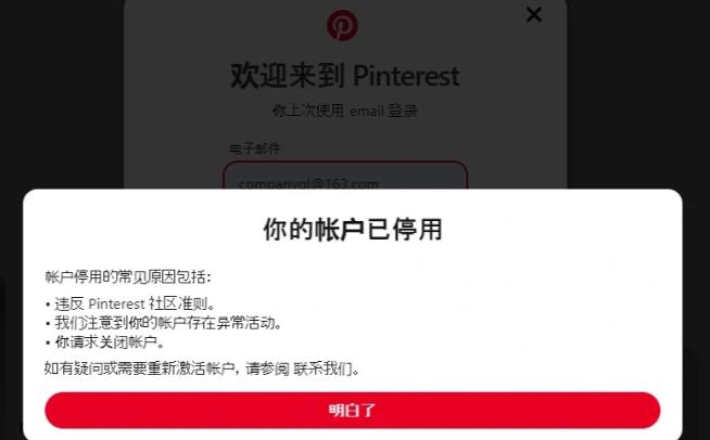Pinterest可能会自动识别某些电子邮件地址或帐户信息为垃圾邮件或虚假帐户,如使用虚假个人信息/虚拟号码,可能被阻止注册。