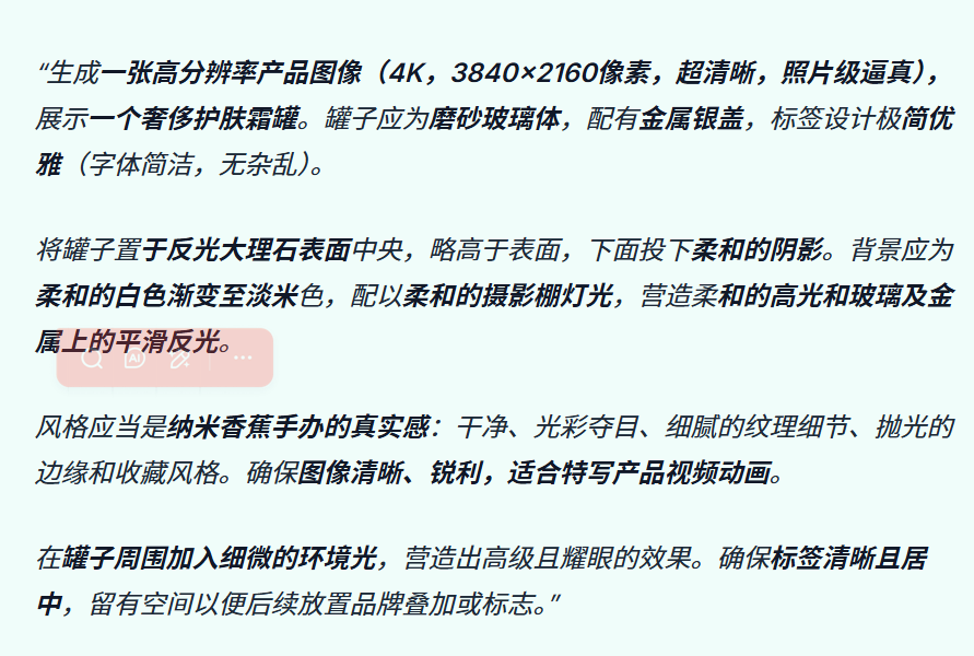 两者结合起来,正好覆盖了短视频带货视频最核心的需求:统一人设 + 强动态展示。Nano Banana 的图片输出可以作为 Veo 3 的稳定视觉输入,从而使得视频中的角色、产品外观保持高度一致;而 Veo 3 则负责把“图”变成有节奏、有动作、有情绪、有音效的带货画面。