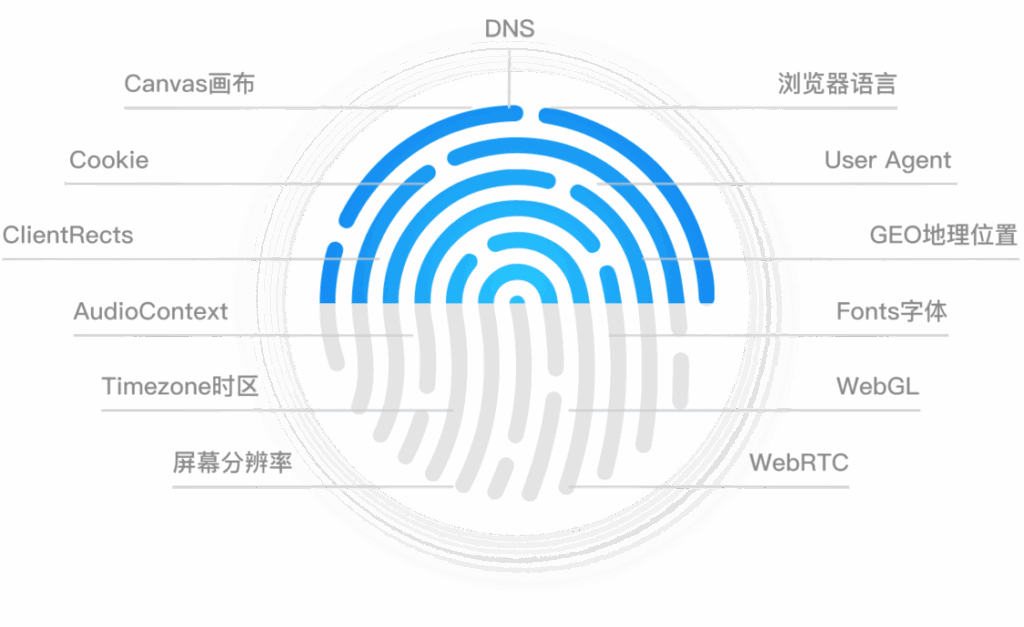 浏览器被网站访问时,会暴露上百个参数,包括但不限于:用户代理(UA)、屏幕分辨率、时区、语言、字体、Canvas渲染特征、WebGL指纹、音频上下文指纹、硬件信息等。这些信息组合起来,就像人的指纹一样具有唯一性,称之为浏览器指纹。
