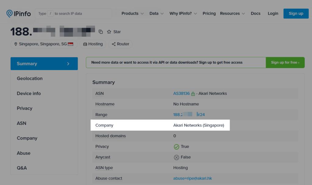 例如ip2location和ipinfo都可以帮助判断IP的实际归属地。