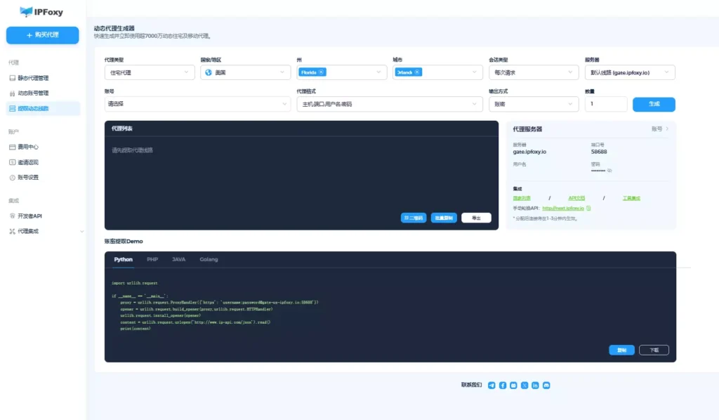 考虑你的具体需求,包括目标网站、抓取量、预算和所需功能。IPFoxy为各种类型的爬虫项目提供了灵活的选择。