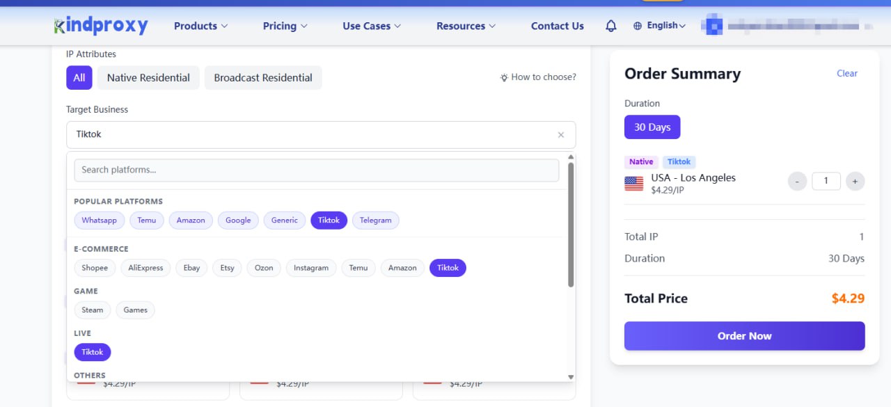 kindproxy按业务用途分类的独享静态住宅ip上架啦,高带宽适合直播,原生ip $4.29/月起