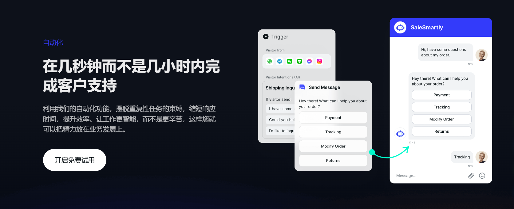 而且相较于LINE官方提供的基础的自动回复功能,SaleSmartly则是支持更加智能的玩法。不仅仅是能通过关键词触发回复,更重要的是,它内设的AI智能识别让它拥有了理解用户意图的能力。这意味着即便用户的问题中没有直接提及某个特定关键词,只要问题涉及相关主题或意义,SaleSmartly就能够聪明地捕捉到并做出相应的自动回复。