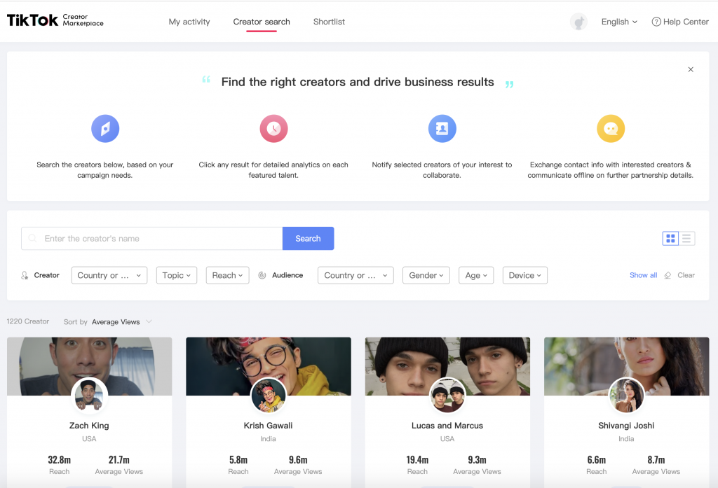 TikTok Creator Marketplace是官方提供给品牌与认证的创作者直接合作的平台。在这里,品牌可以找到适合其营销活动的创作者,并与之合作推广产品或服务。创作者通过与品牌合作获得收益,而TikTok会从中抽取服务费。
