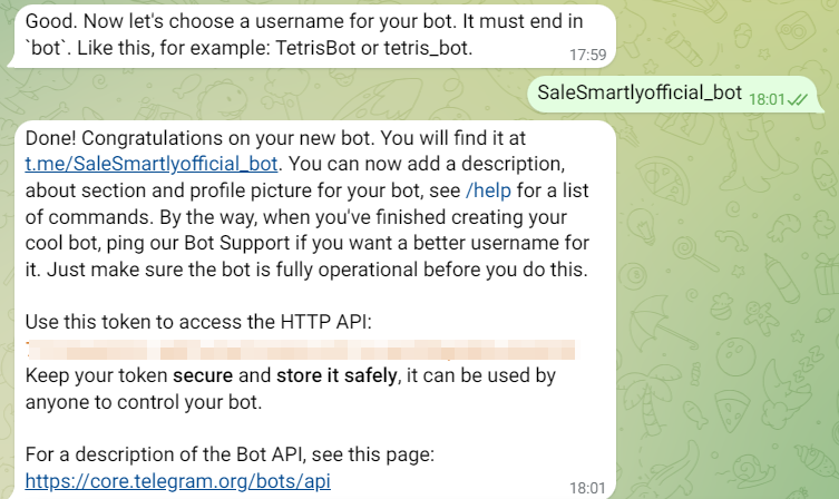注意:HTTP API Token 是机器人与Telegram系统通信的关键,务必妥善保管以确保安全!