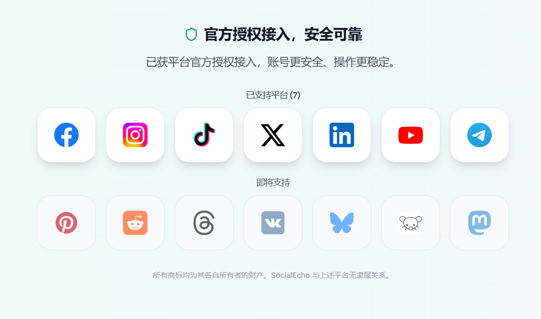 如果你的目标是规模化跑账号,而不是只维护少量官方账号,SocialEcho 在结构上更贴近实际需求。