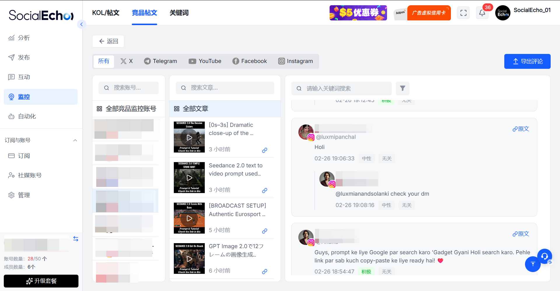 免费试用 7 天 社媒管理平台,一站式管理多平台内容,实时监控算法变化对内容的影响,让你的每一篇内容都获得应有的曝光。