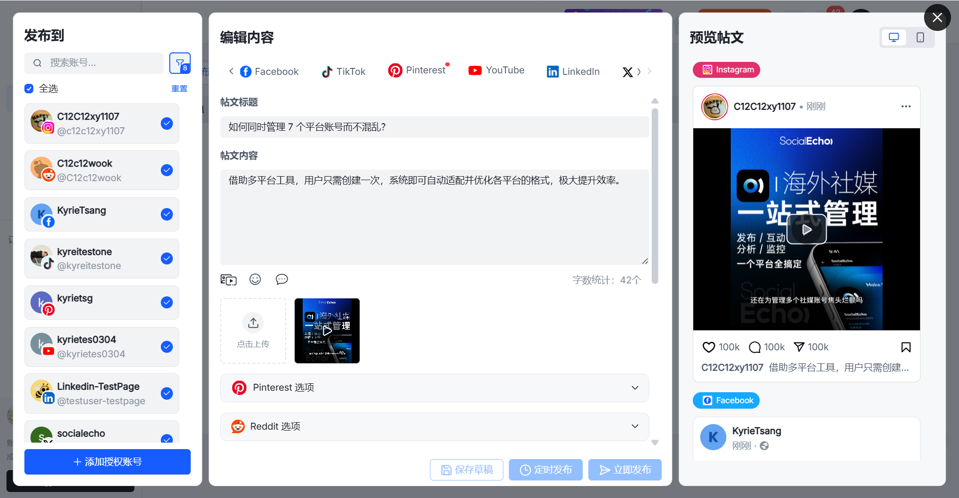 立即注册,免费试用 SocialEcho 的多平台管理与数据分析功能。