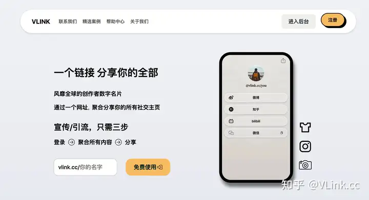 作为一款风靡全球的数字营销工具,VLink.cc可以帮助你聚合分享你的全部信息