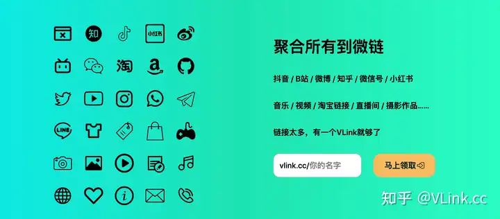 在过去,你可能需要告诉别人,你知乎主页是什么,微博主页是什么,小红书主页是什么,你出售的商品链接在哪,但有了vlink,你可以只需要告诉其他人,vlink链接是什么,它将帮助你聚合分享你的一切。